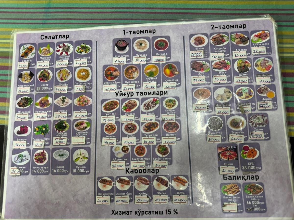 Nestled on Bodomzor Yuli Street in Tashkent, Sardoba is a delightful café that invites food enthusiasts to savor the rich and vibrant flavors of authentic Uzbek cuisine. If you're searching for a cozy spot to indulge in delectable dishes without stretching your wallet, this is the place to be.